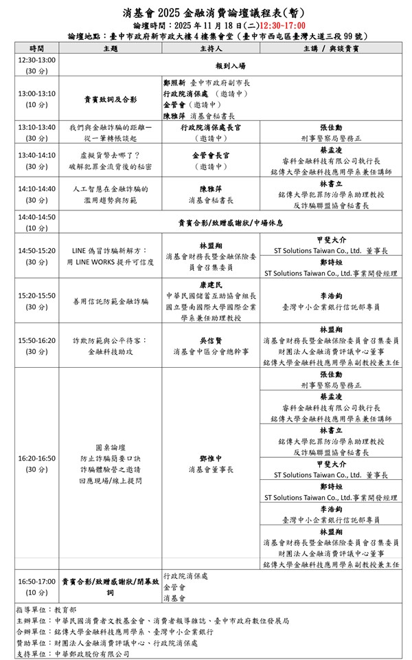 【論壇日期】2025年11月18日(星期二)12:30~17:00(12:30開始報到,13:00活動開始)